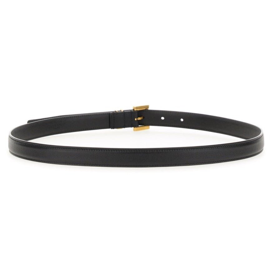 Yves Saint Laurent Monogram Square-Buckle Narrow Belt In Black